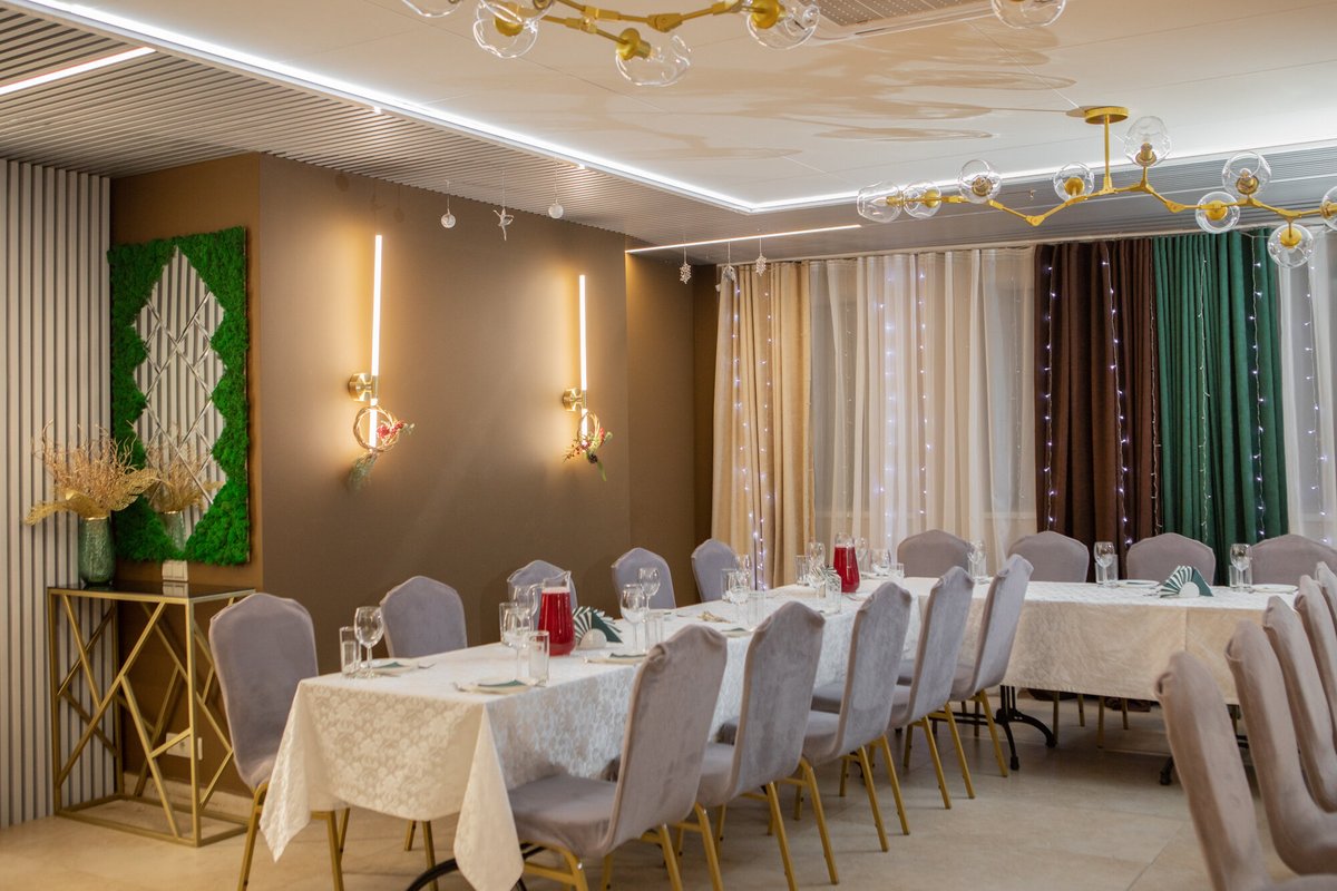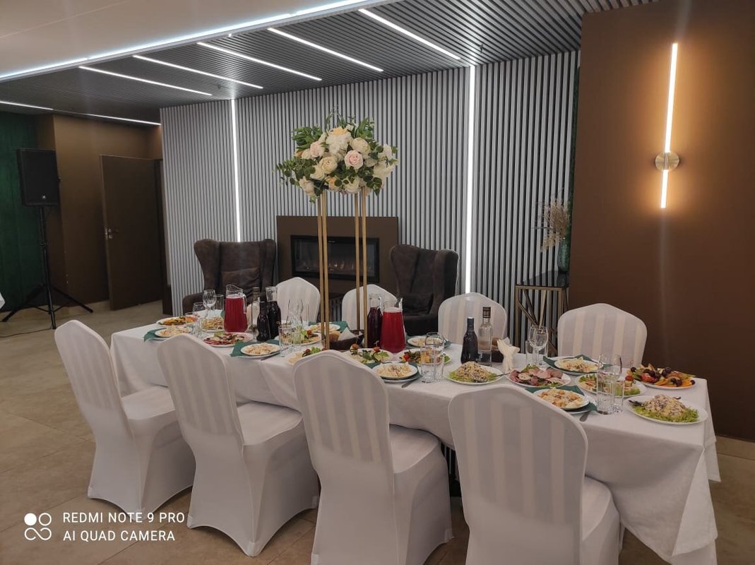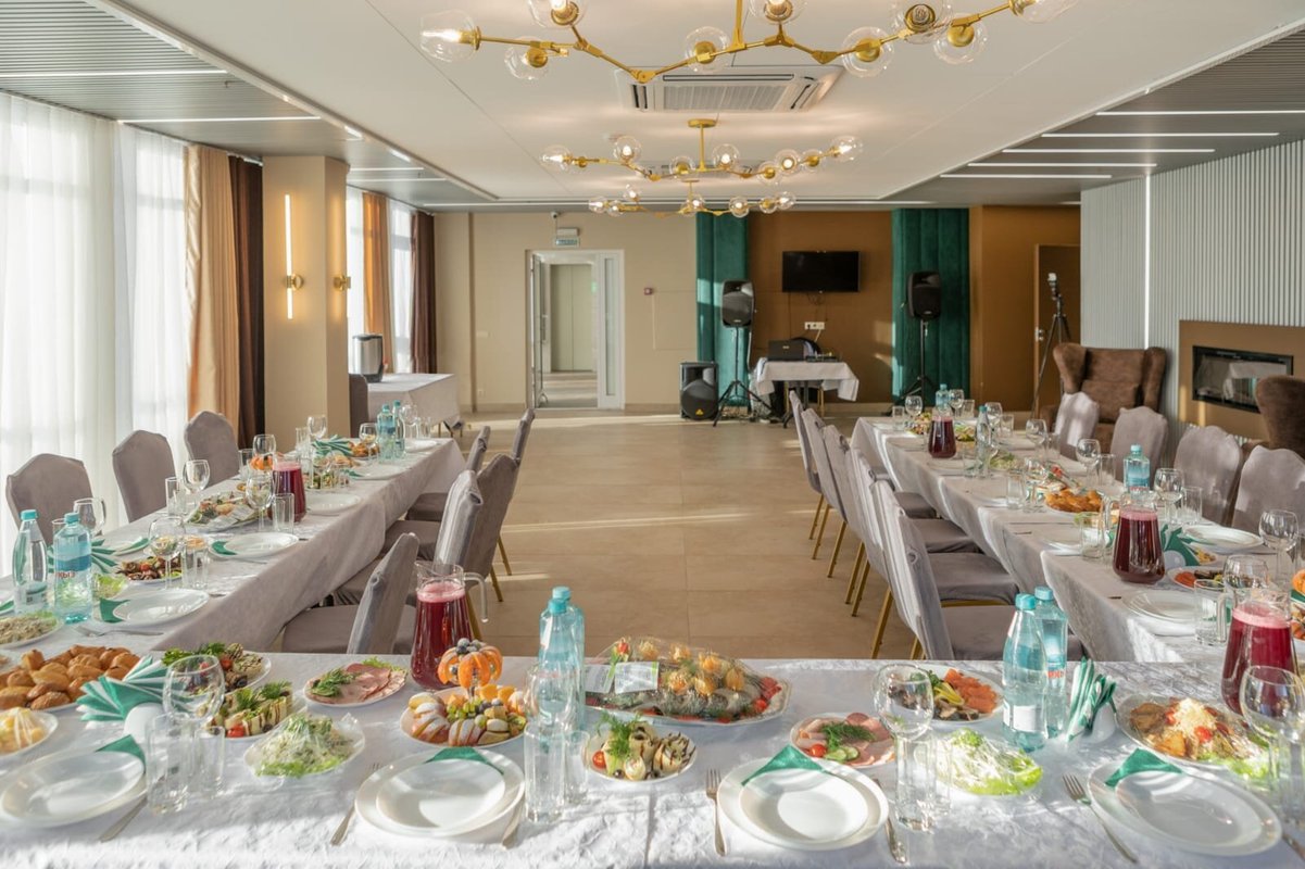 У нас организован бизнес-ланч, сотрудники организуют гастрономическое оформление любого события (кейтеринг), работает доставка блюд в офис или на дом, доступен банкетный зал - всё к вашим услугам.